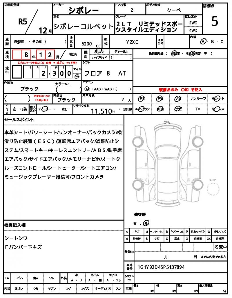 VIN/Serial No. | 1G1Y92D45P5137894 |