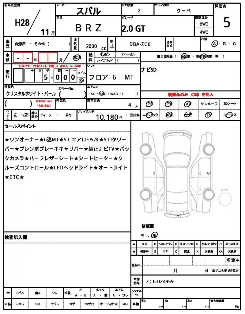 Model code | DBA-ZC6 |