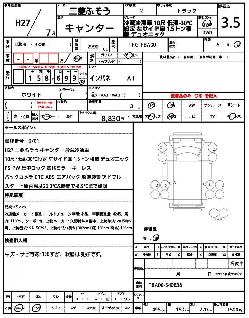 VIN/Serial No. | FBA00-540838 |