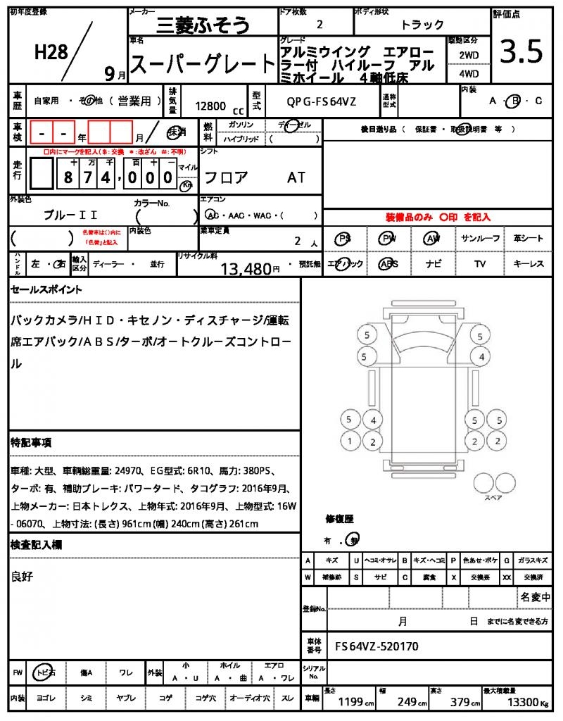 VIN/Serial No. | FS64VZ-520170 |