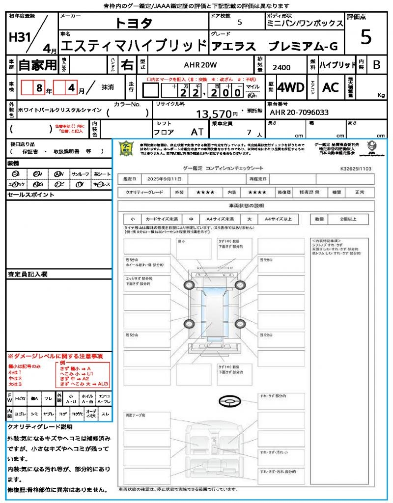 VIN/Serial No. | AHR20-7096033 |