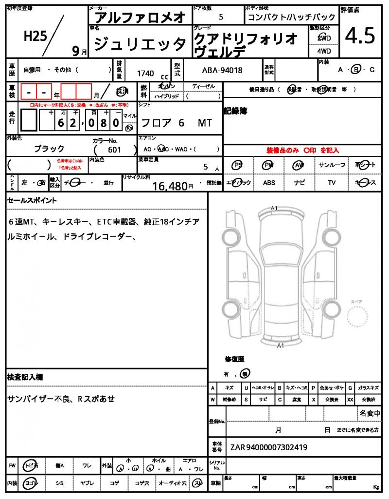 VIN/Serial No. | ZAR94000007302419 |