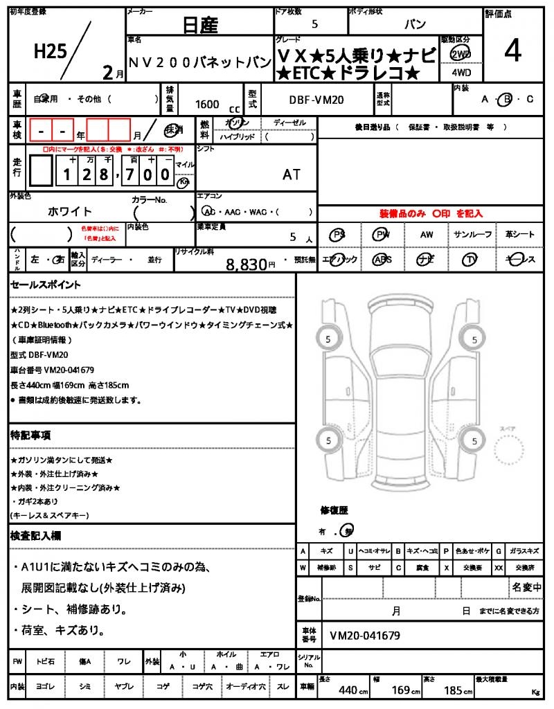 2013 NISSAN NV200 VANETTE VAN