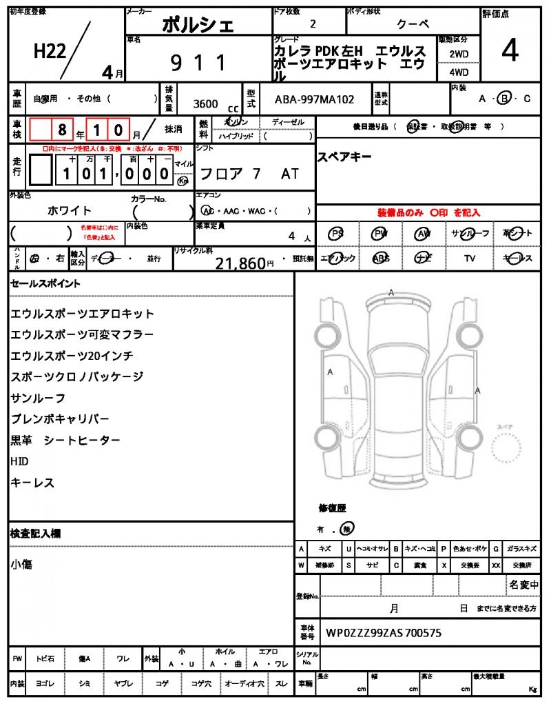 VIN/Serial No. | WP0ZZZ99ZAS700575 |