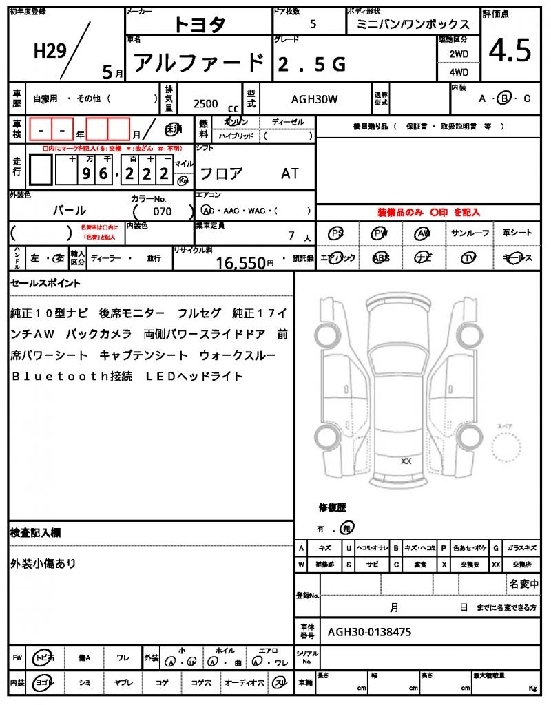 VIN/Serial No. | AGH30-0138475 |