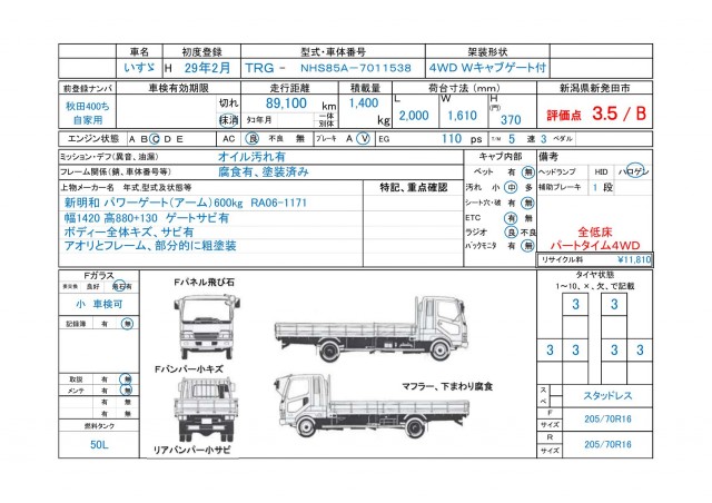 VIN/Serial No. | NHS85-7011538 |
