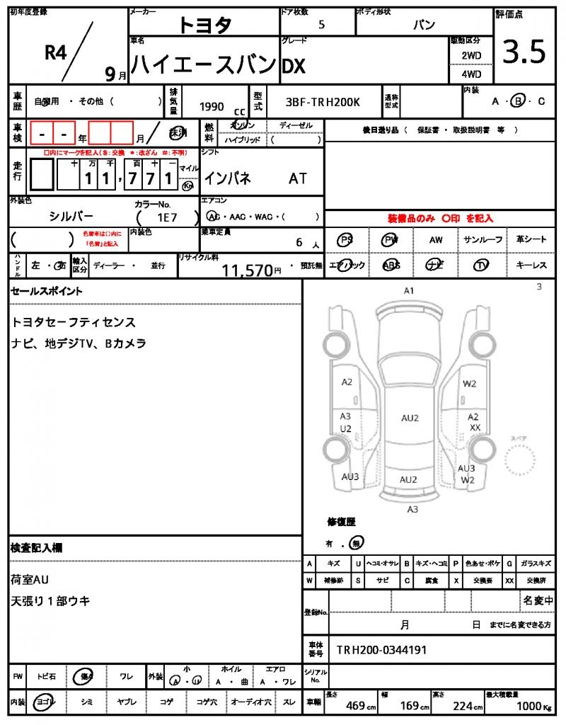 VIN/Serial No. | TRH200-0344191 |