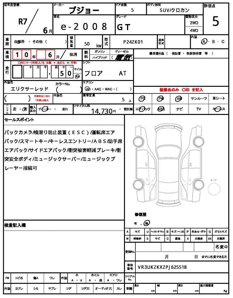 VIN/Serial No. | VR3UKZKXZPJ625518 |
