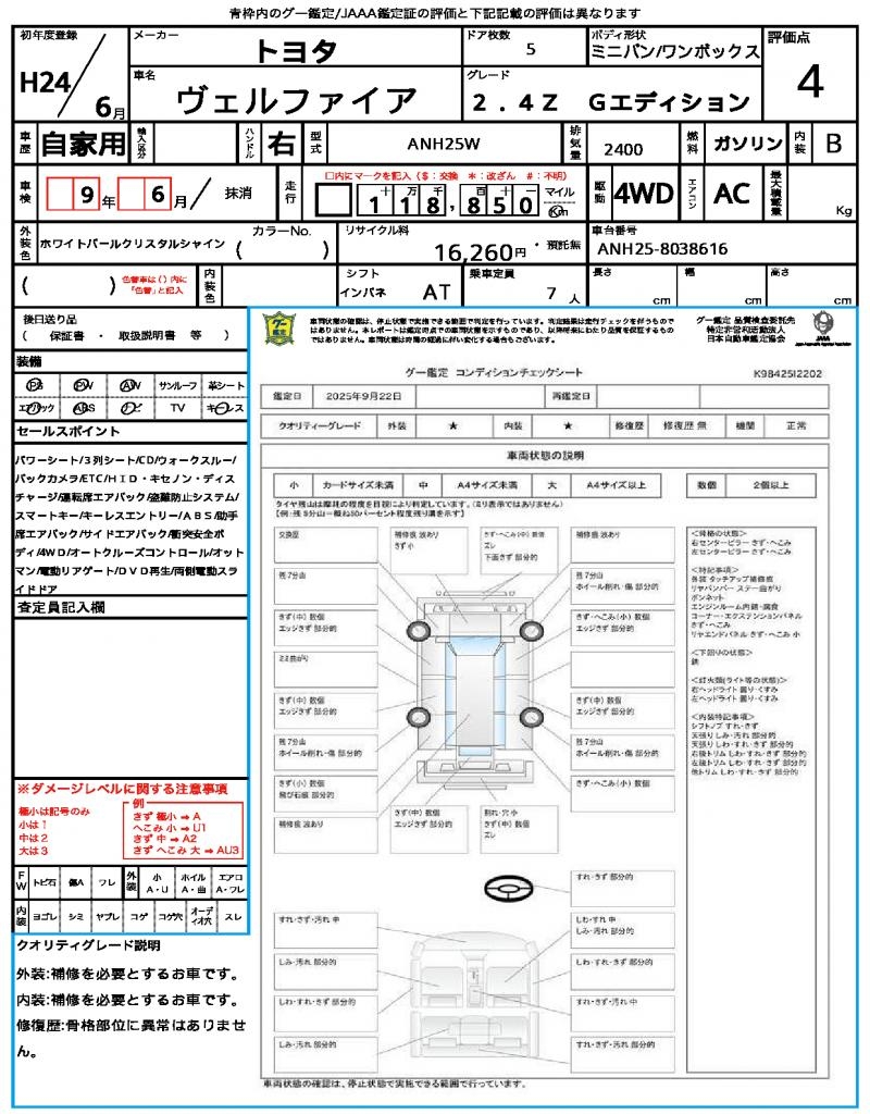 VIN/Serial No. | ANH25-8038616 |