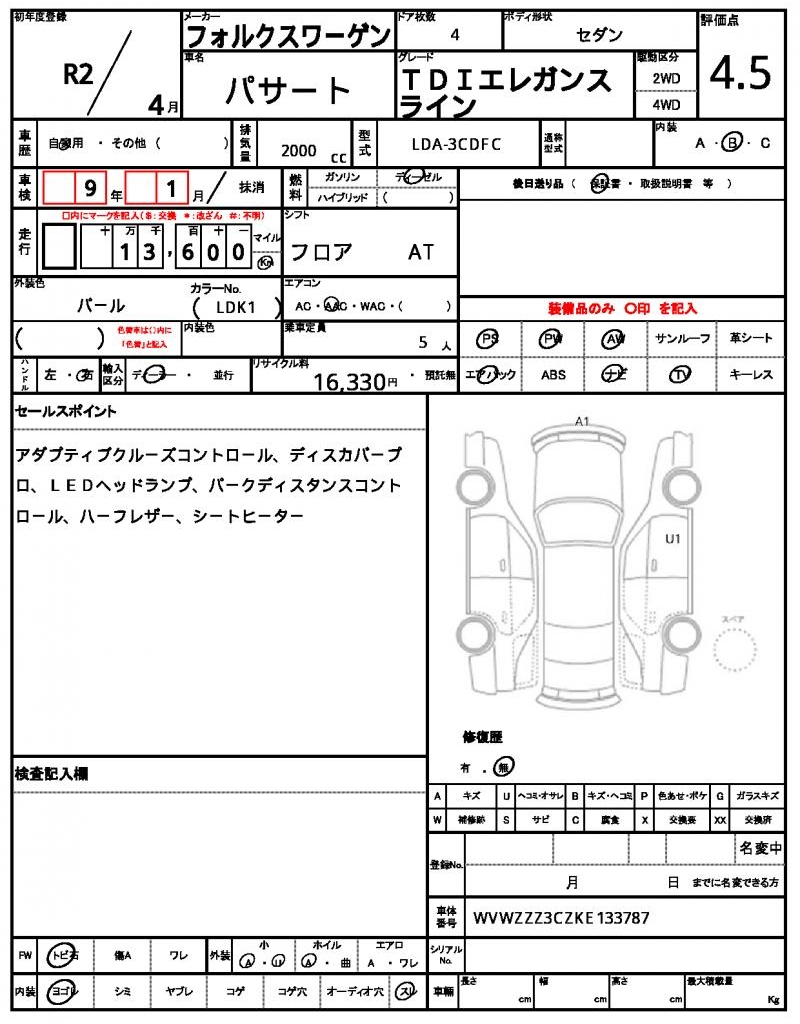 VIN/Serial No. WVWZZZ3CZKE133787