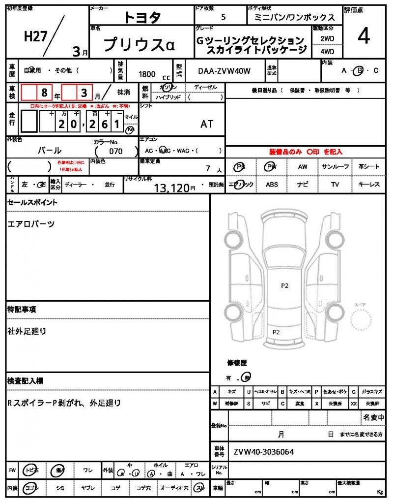 VIN/Serial No. | ZVW40-3036064 |