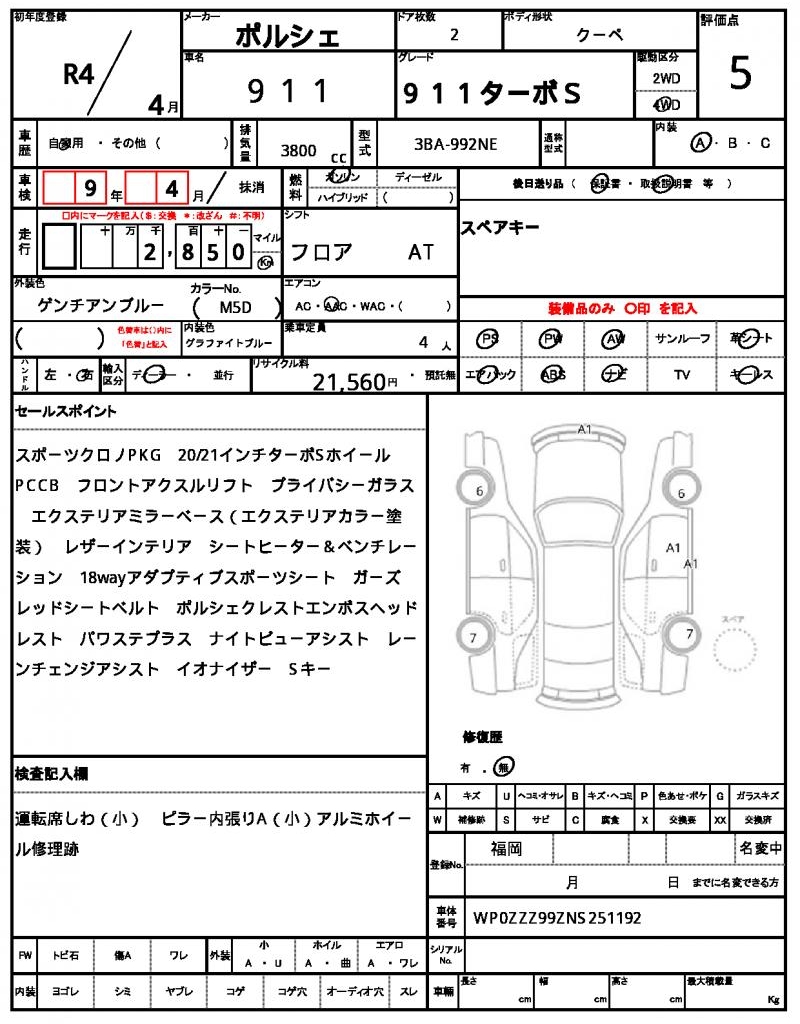 VIN/Serial No. | WP0ZZZ99ZNS251192 |