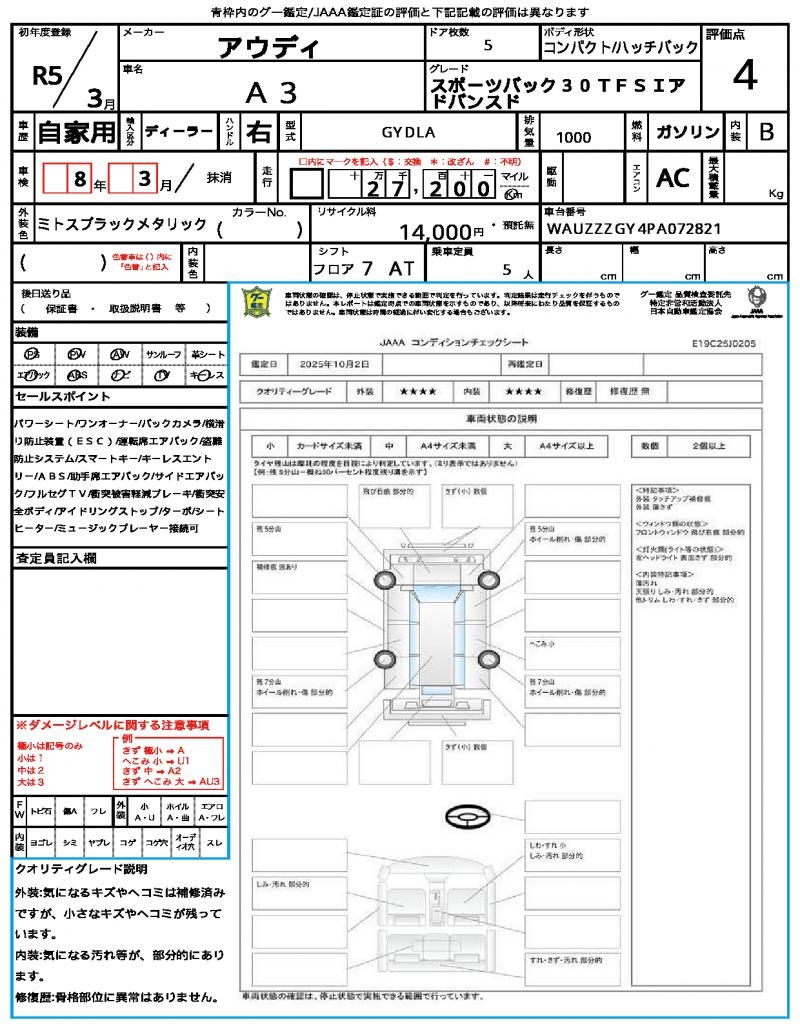 | VIN/Serial No. | WAUZZZGY4PA072821 |