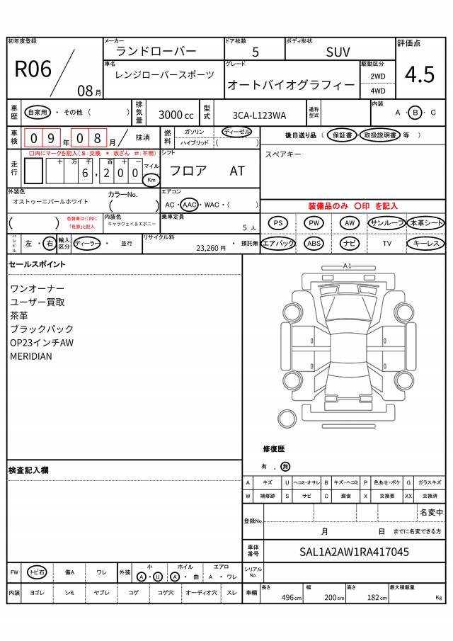 VIN/Serial No. SAL1A2AW1RA417045