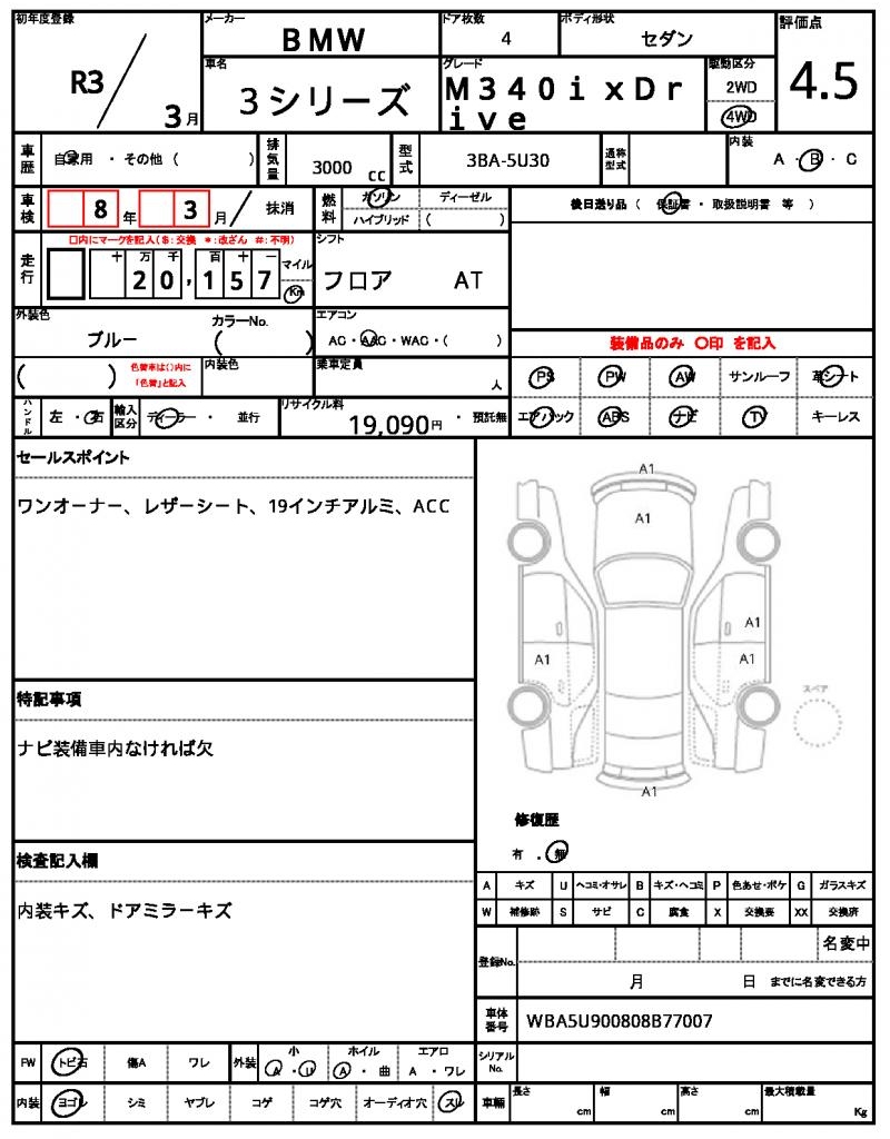 VIN/Serial No. | WBA5U900808B77007 |