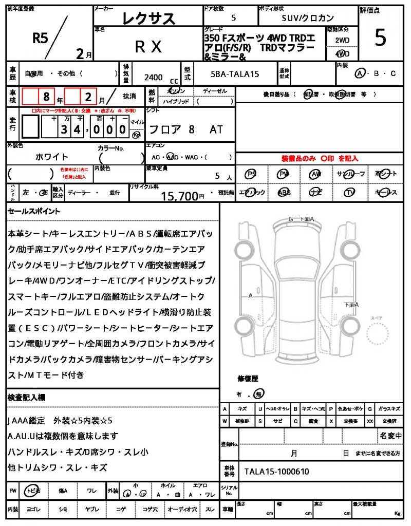 VIN/Serial No. | TALA15-1000610 |