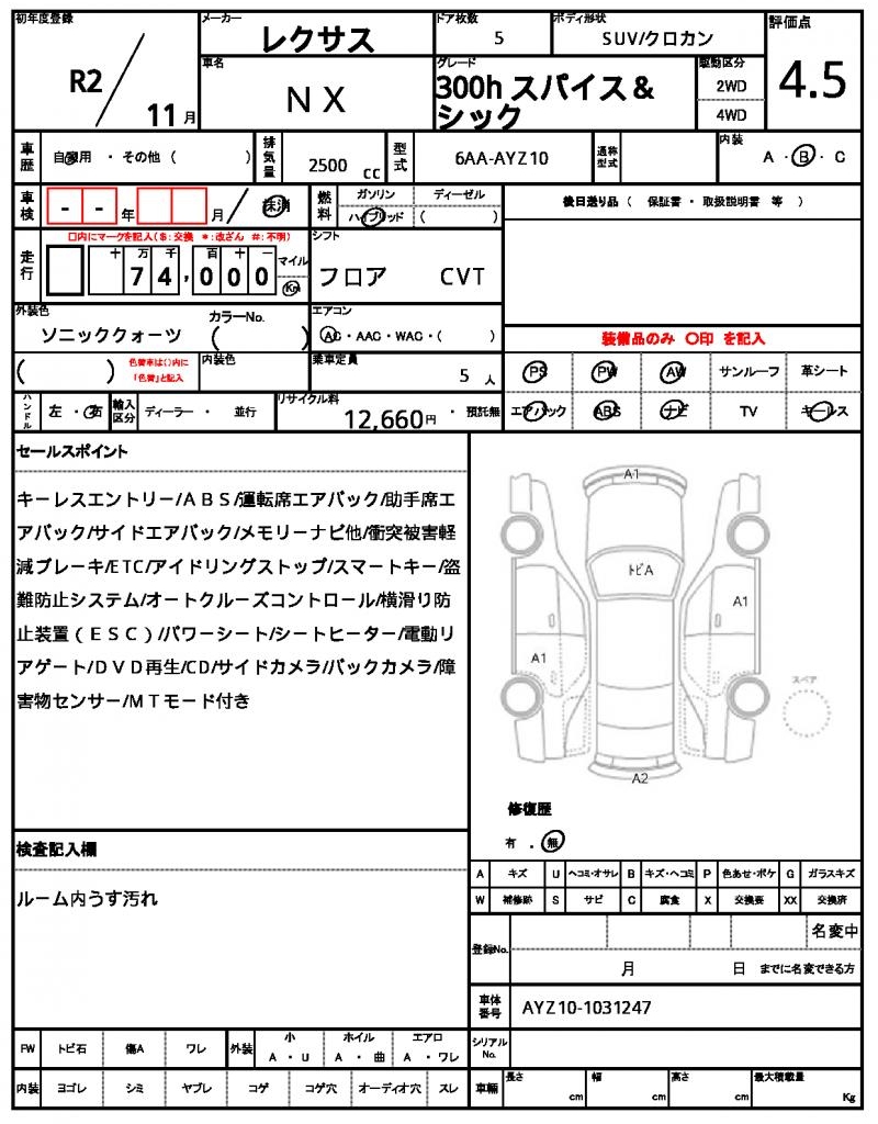 | VIN/Serial No. | AYZ10-1031247 |