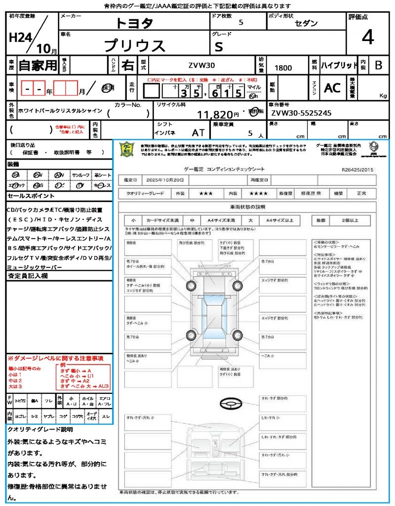 VIN/Serial No. | ZVW30-5525245 |