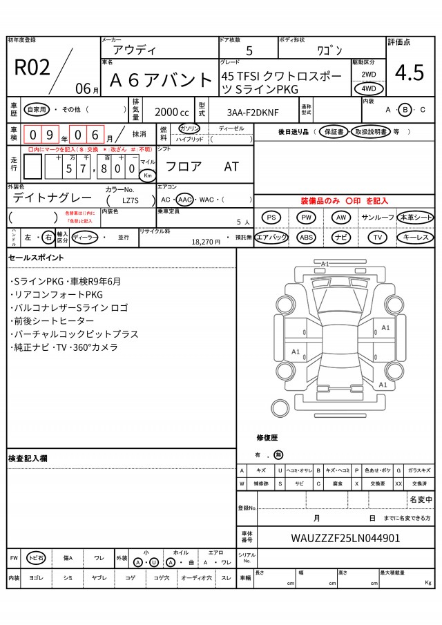 VIN/Serial No. WAUZZZF25LN044901
