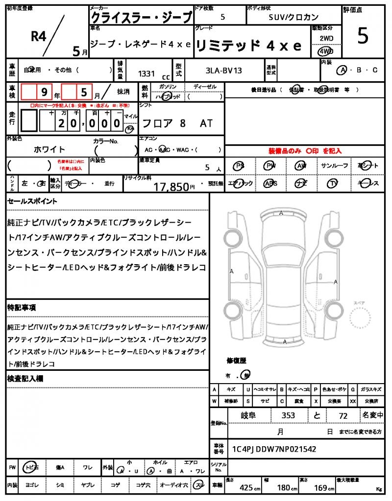 VIN/Serial No. 1C4PJDDW7NP021542
