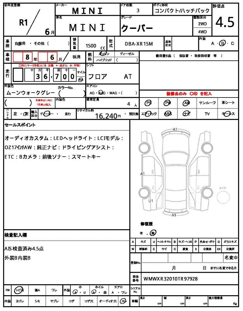 VIN/Serial No. WMWXR32010TR97928