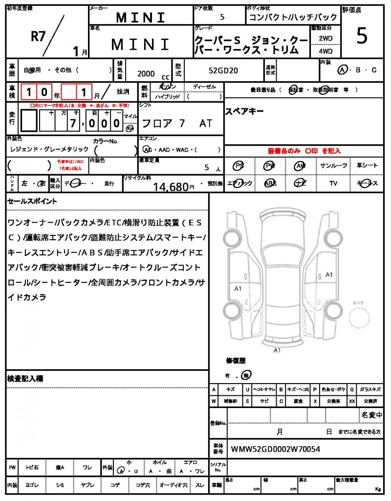 | VIN/Serial No. | WMW52GD0002W70054 |