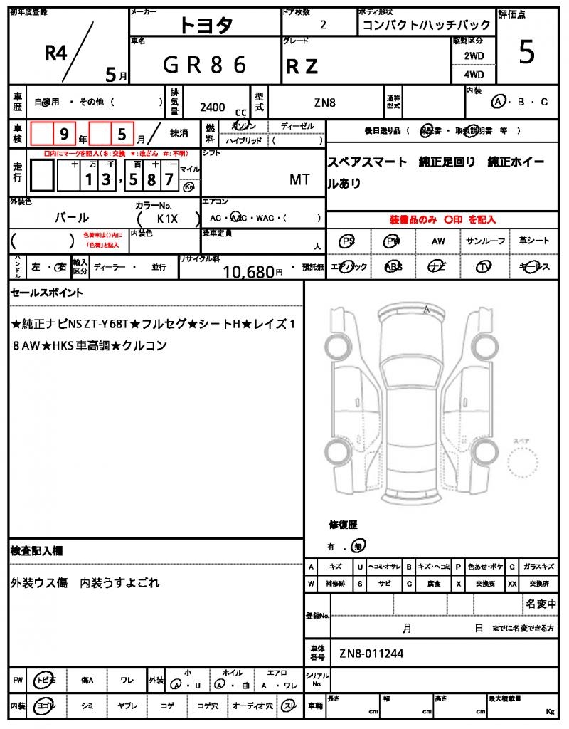 VIN/Serial No. ZN8-011244