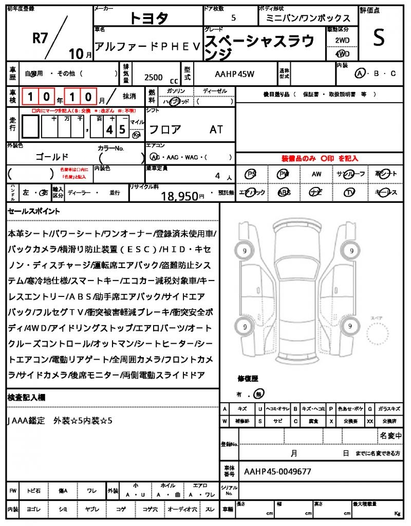 | VIN/Serial No. | AAHP45-0049677 |