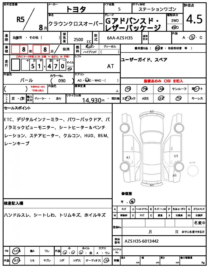 VIN/Serial No. AZSH35-6013442