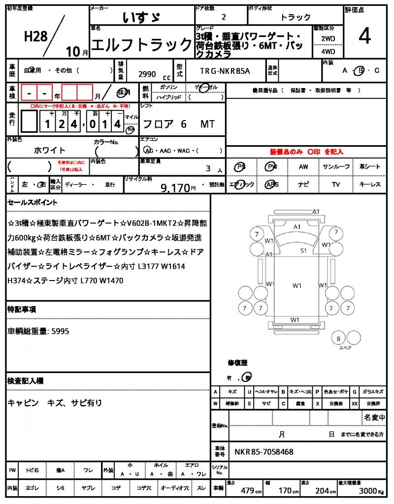 | VIN/Serial No. | NKR85-7058468 |