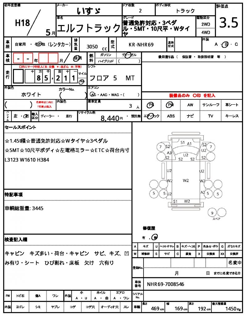 | VIN/Serial No. | NHR69-7008546 |