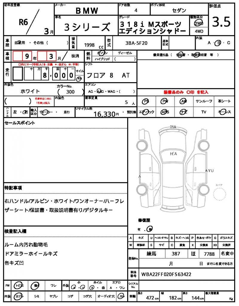 VIN/Serial No. WBA22FF020FS63422