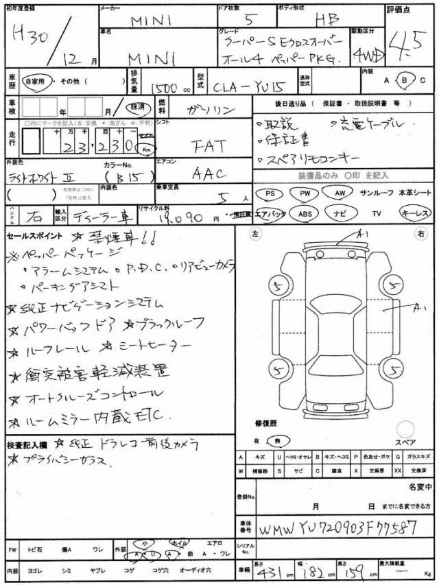 | VIN/Serial No. | WMWYU720903F77587 |