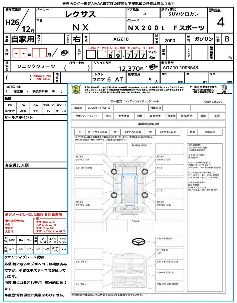 | VIN/Serial No. | AGZ10-1003643 |