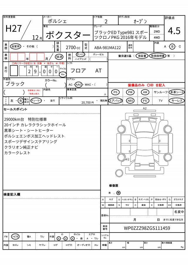 VIN/Serial No. WP0ZZZ98ZGS111459