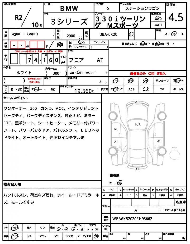 | VIN/Serial No. | WBA6K52020FH95662 |