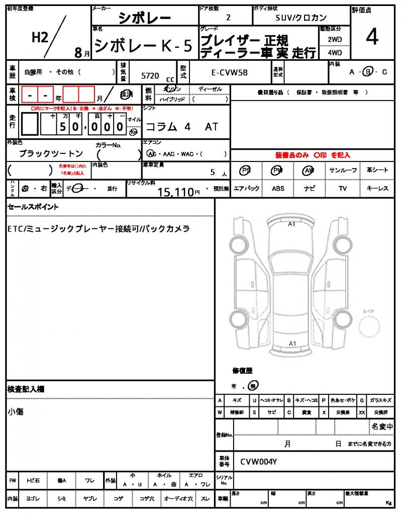 | VIN/Serial No. | CVW004Y |