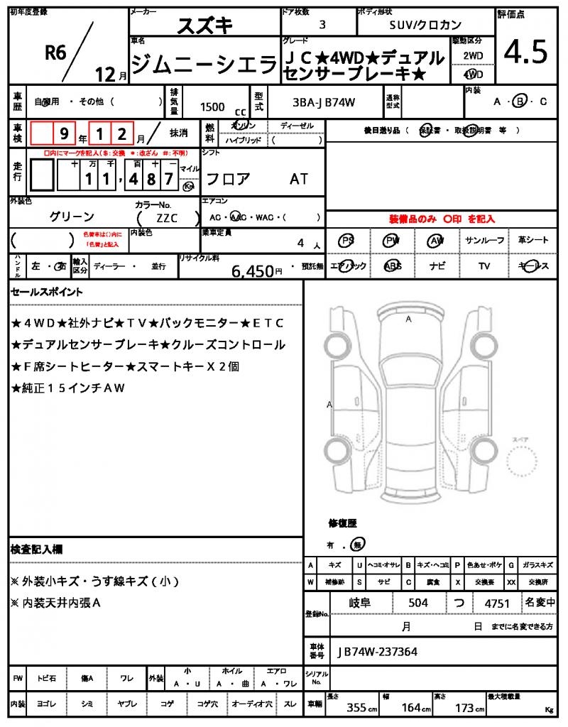 | VIN/Serial No. | JB74W-237364 |