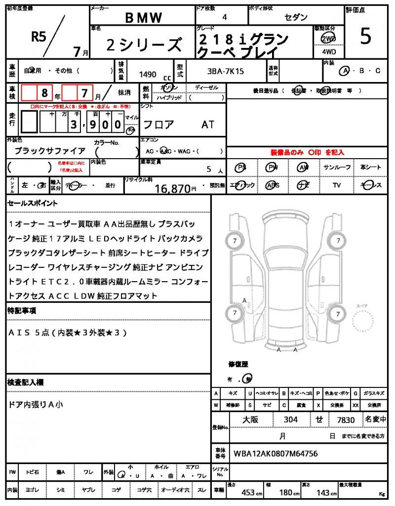 VIN/Serial No. WBA12AK0807M64756