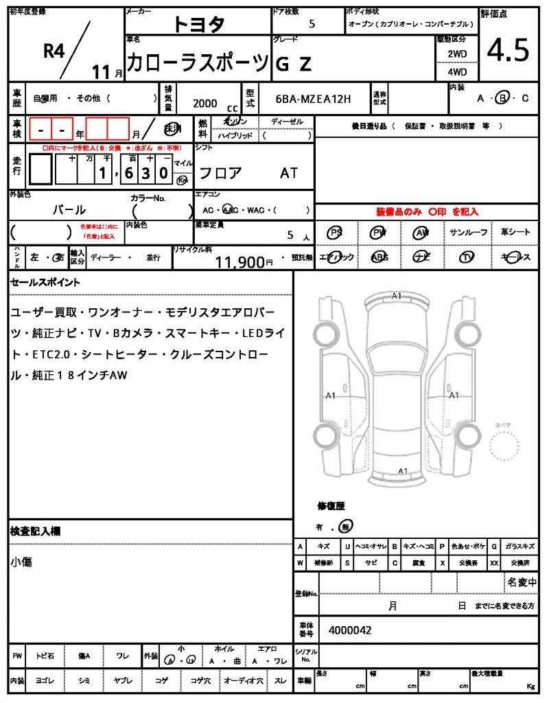 | VIN/Serial No. | 4000042 |