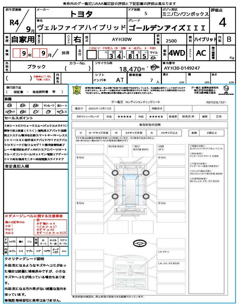 | VIN/Serial No. | AYH30-0149247 |