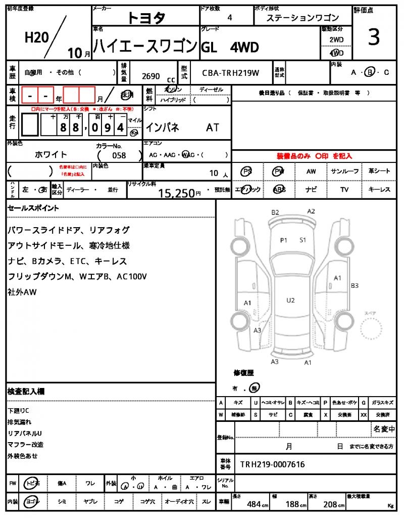 | VIN/Serial No. | TRH219-0007616 |