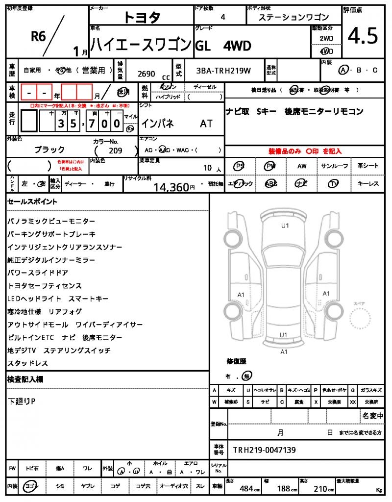 | VIN/Serial No. | TRH219-0047139 |
