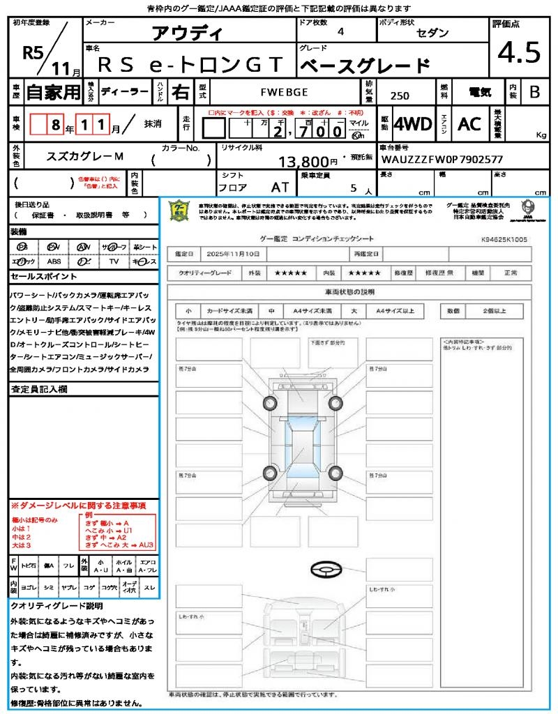 VIN/Serial No. WAUZZZFW0P7902577