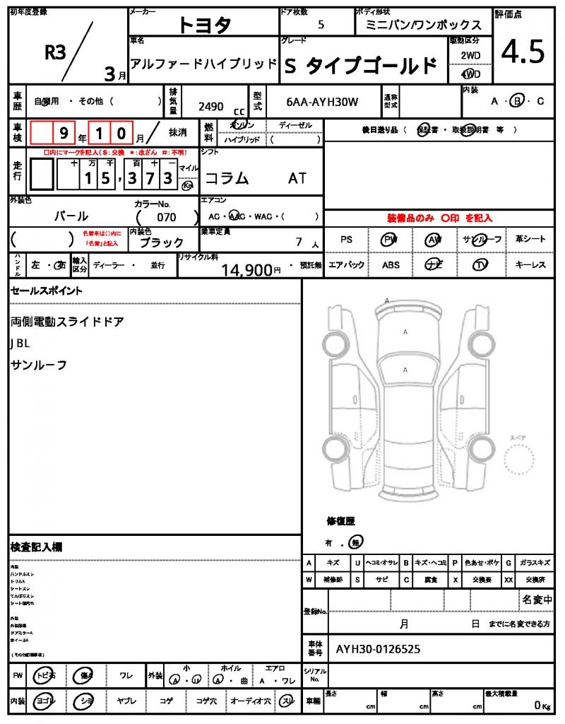 | VIN/Serial No. | AYH30-0126525 |