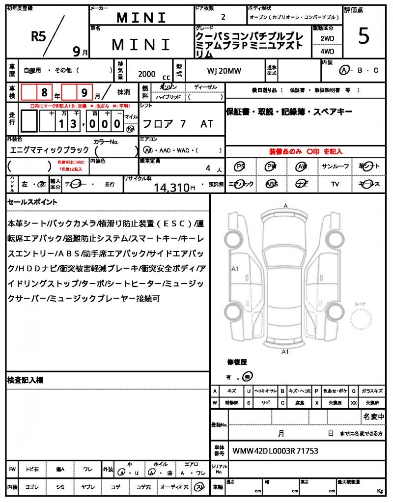 | VIN/Serial No. | WMW42DL0003R71753 |