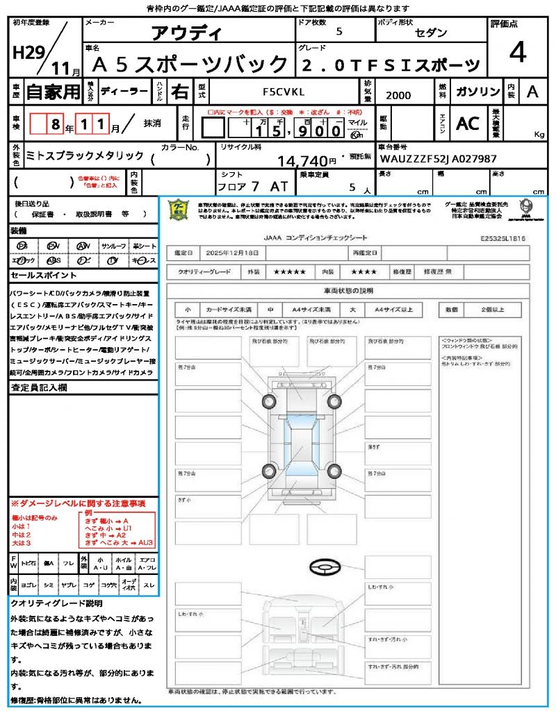 | VIN/Serial No. | WAUZZZF52JA027987 |