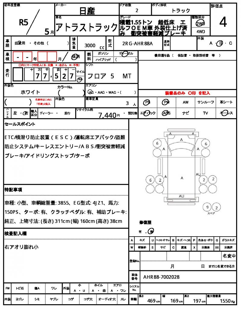 | VIN/Serial No. | AHR88-7002028 |