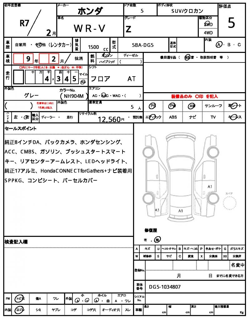 | VIN/Serial No. | DG5-1034807 |