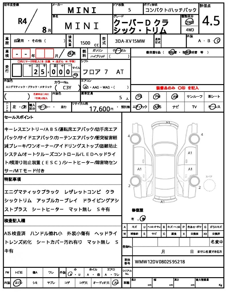 | VIN/Serial No. | WMW12DV0802S95218 |